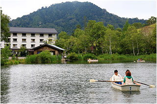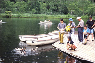 木戸池貸しボートでは、家族連れやカップルで志賀高原の森と、流れ行く雲を眺めながら、ゆったりと揺れて湖面に顔を覗かせる魚達がお待ちしております。
